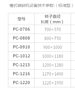 錘式破碎機技術(shù)參數(shù)