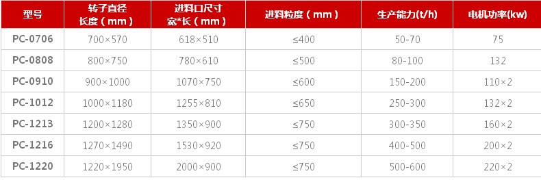 除了錘式破碎機轉(zhuǎn)子這個技術(shù)參數(shù)之外,錘式破碎機電機功率也是錘式破碎機重要的一個區(qū)分,作為大產(chǎn)量的破碎機設(shè)備,配備的電機功率然也是比較大的,但是以我們公司同等時處理量的破碎機設(shè)備為例,以時產(chǎn)50噸的錘式破碎機為例,需要配備的電機功率是75KW,其他廠家需要配備的電機功率是比較大的,那么整體的電能消耗是比較大的,在電能消耗上的技術(shù)優(yōu)勢是顯而易見的,下面以別的廠家設(shè)備電機功率和我們公司的設(shè)備電機功率進行一下對比。