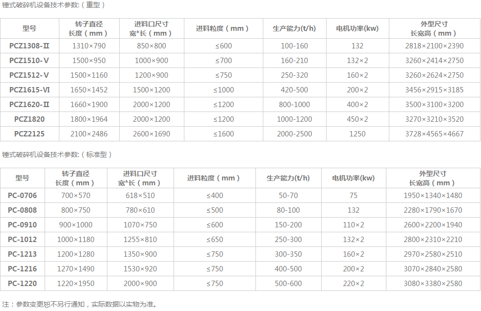 我們可以看到型號為PC-1213的錘式破碎機就是指1214 破碎機;PCZ1308-II指的是1315破碎機。