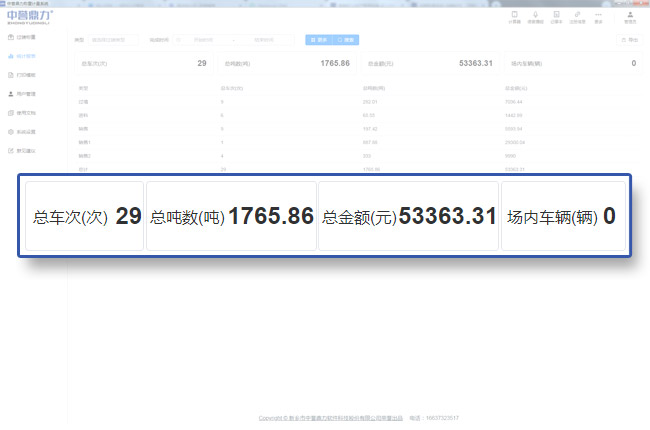 對(duì)過(guò)磅類型、特點(diǎn)時(shí)間段或全部時(shí)間段的車次、噸數(shù)、金額等進(jìn)行匯總,并可以直接導(dǎo)出報(bào)表;
