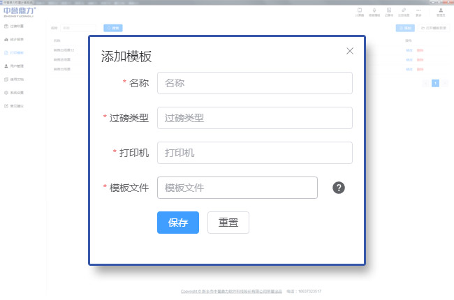可添加、刪除票據(jù)模板,并根據(jù)系統(tǒng)內(nèi)置的變量,對(duì)模板中的模板名稱、過(guò)磅類型、模板文件名等自定義設(shè)置,根據(jù)不同場(chǎng)景選擇打印票據(jù)模板;