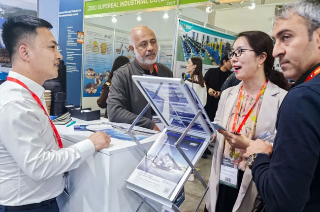布展期間,中譽鼎力營銷總監代志鵬、山東-東北大區經理李觀本耐心介紹業務、解答咨詢,并與眾多觀展者就礦山裝備性能技術創新、產業未來發展趨勢等話題展開了深入的探討和交流。