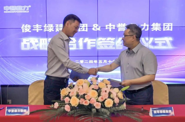 簽約儀式上,荊門俊豐綠建集團黨委書記、董事長胡錕與中譽鼎力集團董事長張治民代表雙方正式簽訂《戰略合作協議》。