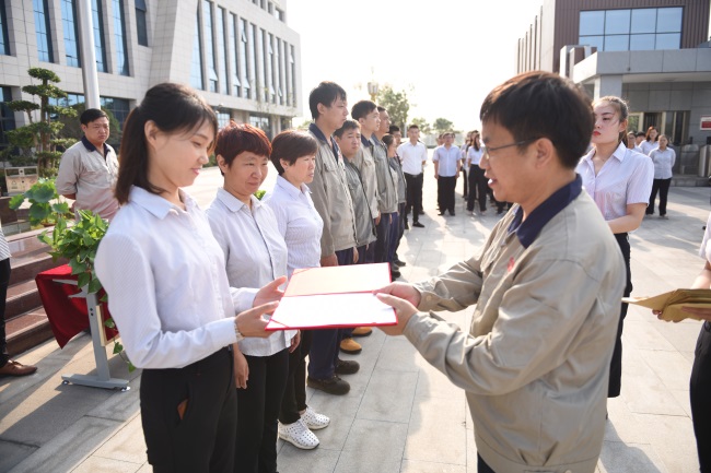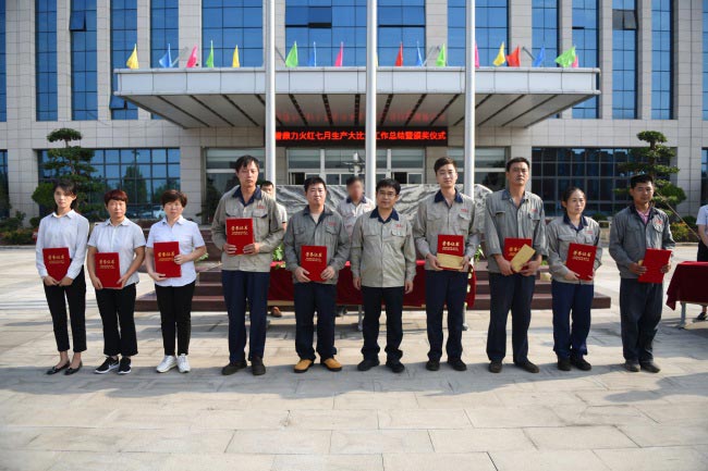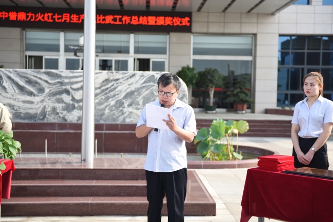 8月13日清晨,中譽鼎力“火紅七月”生產大比武工作總結暨頒獎儀式舉行。河南中譽鼎力智能裝備有限公司副總經理呂河龍,公司各部門部長等出席頒獎儀式。