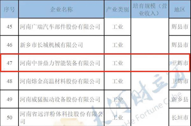 同時(shí),《計(jì)劃》發(fā)布了新鄉(xiāng)市“3513”大企業(yè)(集團(tuán))培育名單,河南中譽(yù)鼎力智能裝備有限公司入圍。