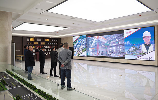 考察團(tuán)先來到中譽(yù)鼎力智能裝備有限公司新廠區(qū),先后了解了中譽(yù)鼎力企業(yè)發(fā)展歷程、五位一體循環(huán)建材產(chǎn)業(yè)園項(xiàng)目、智能化一體生產(chǎn)車間和智能礦山管理系統(tǒng)。
