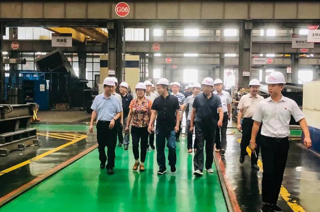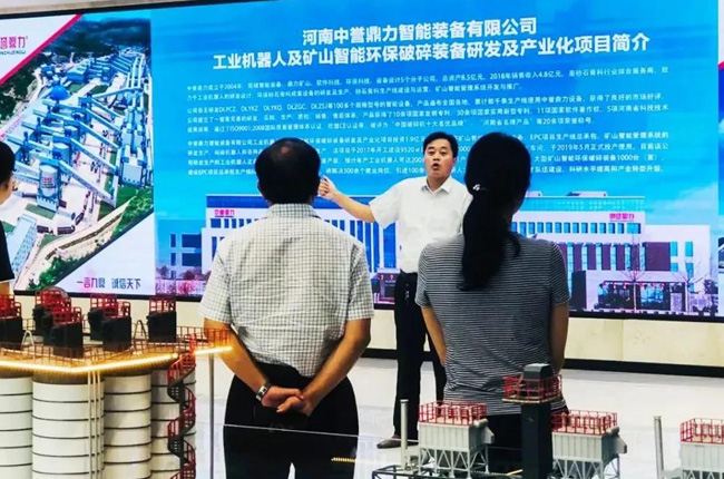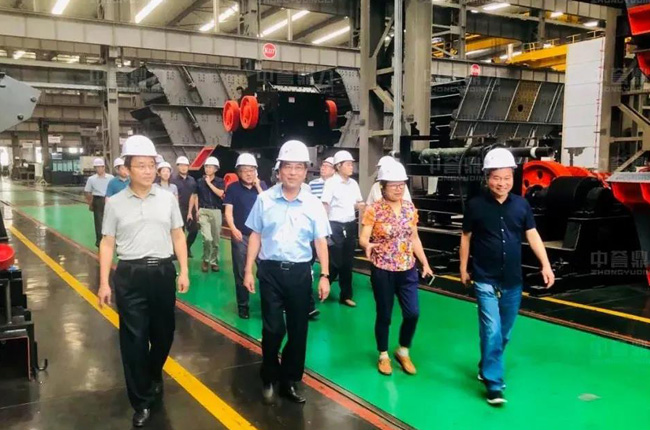 之后,考察組導一行實地參觀了中譽鼎力智能化一體生產車間,對中譽鼎力智能化車間建設、礦山設備制造等情況進行了高度評價。
