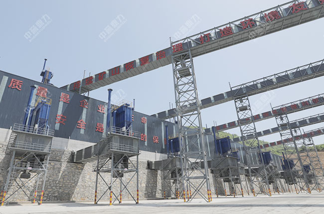 b.不同規格成品料通過密閉輸送帶進入相應規格的封閉成品料鋼板儲料倉,避免石料露天堆放造成粉塵污染。