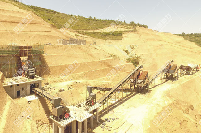 下圖為銅川平安建材石料廠生產(chǎn)線景圖,整條生產(chǎn)流程簡單明了,采用顎破+整形錘破的二級破碎方式。