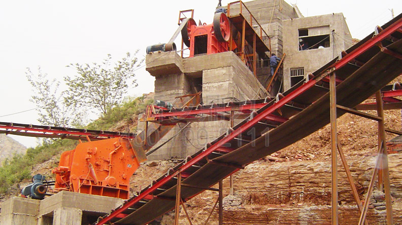 利用地形落差,經(jīng)過顎式破碎機(jī)處理過的石料經(jīng)過滑道直接進(jìn)入反擊破進(jìn)行整形,不僅節(jié)省了占地面積,還節(jié)省了這個(gè)環(huán)節(jié)輸送設(shè)備的投資,日常生產(chǎn)中用電成本也比較低。