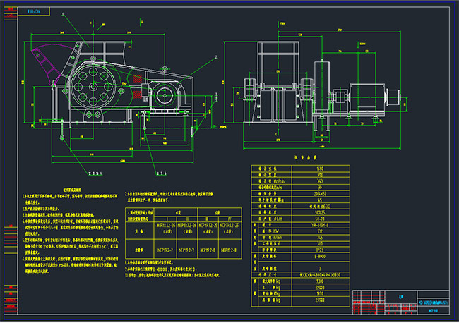 PCF1609單段錘式破碎機參數(shù)表